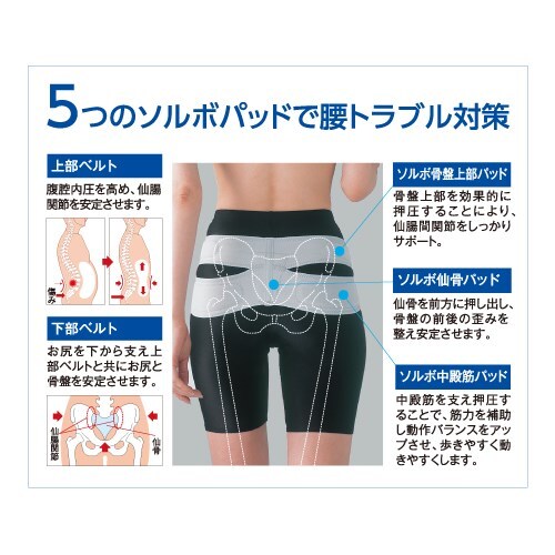 5つのソルボセイン®パッドが腰のトラブル対策に役立ちます。